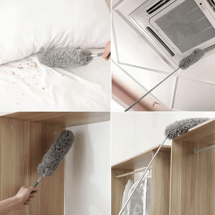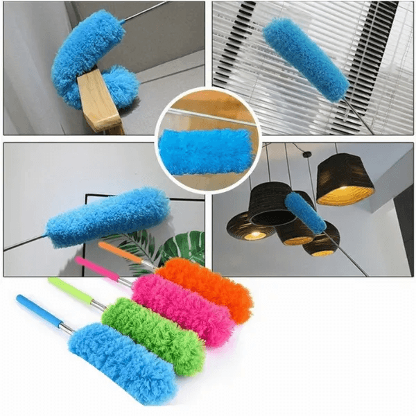 Teleskopowa miotełka do kurzu zrobi to za Ciebie. Długa, regulowana rączka i ruchoma głowica pozwalają wyczyścić wszystko: od lamp po żaluzje, bez zbędnego wysiłku. Miękka mikrofibra nie tylko łapie kurz, ale też chroni delikatne powierzchnie przed zarysowaniem. To codzienne sprzątanie w wersji smart – lekko, szybko i wygodnie.